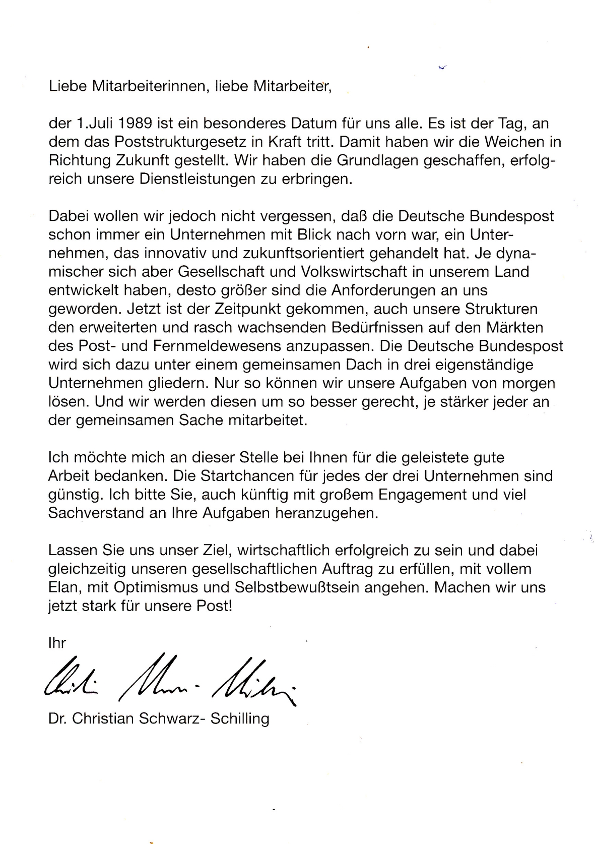 Mitarbeiter-Information des Bundespostministers vom Mai 1989, hier der Brief im PDF-Format, vergrößert |