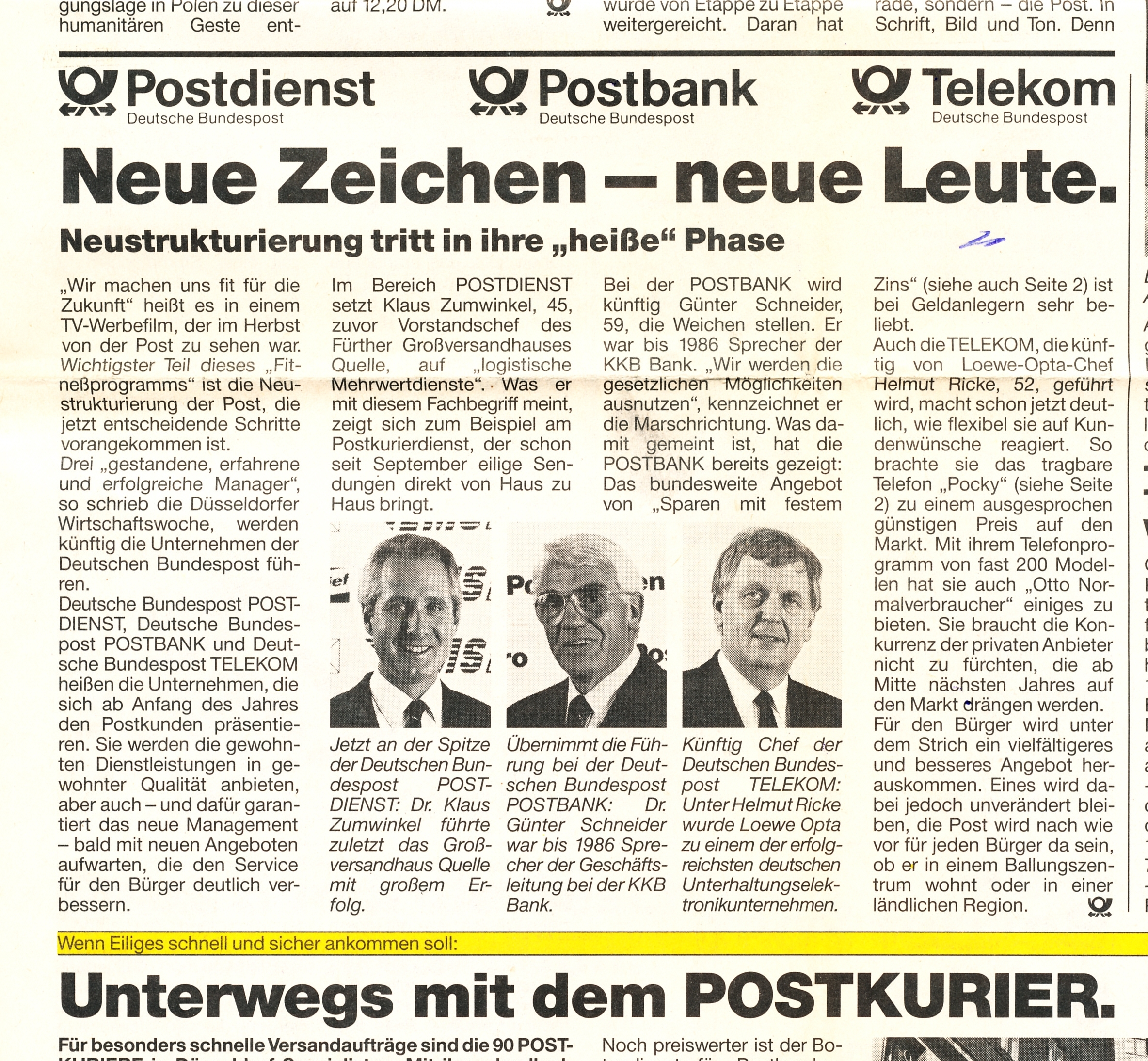 aus der „Zeitung für Postkunden” Nr. 2/1989: Die neuen Vorstände vergrößert |